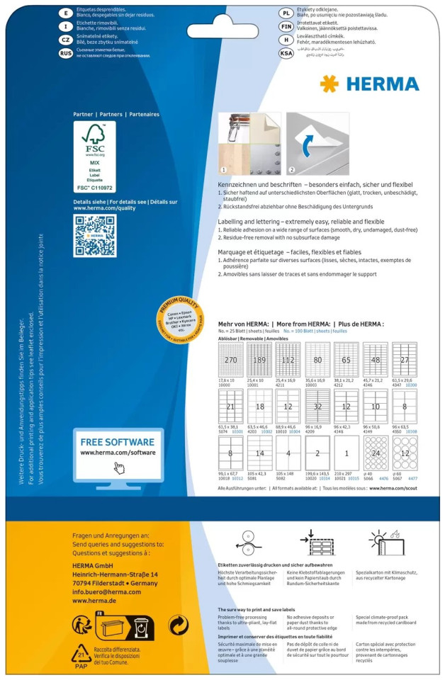 Ετικέτες Herma λευκές 35,6x16,9 mm 25 φύλλα 2000 τεμ αφαιρούμενες 10003