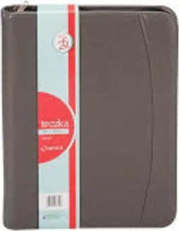 Χαρτοφύλακας με φερμουάρ από οικολογικό δέρμα, με μαξιλαράκι, κρίκους, αριθμομηχανή, τσέπη με φερμουάρ και θέση για επαγγελματική κάρτα.{Χρώμα} Γκρι . {Type} Με φερμουάρ. Συνδιάσκεψη {Type}