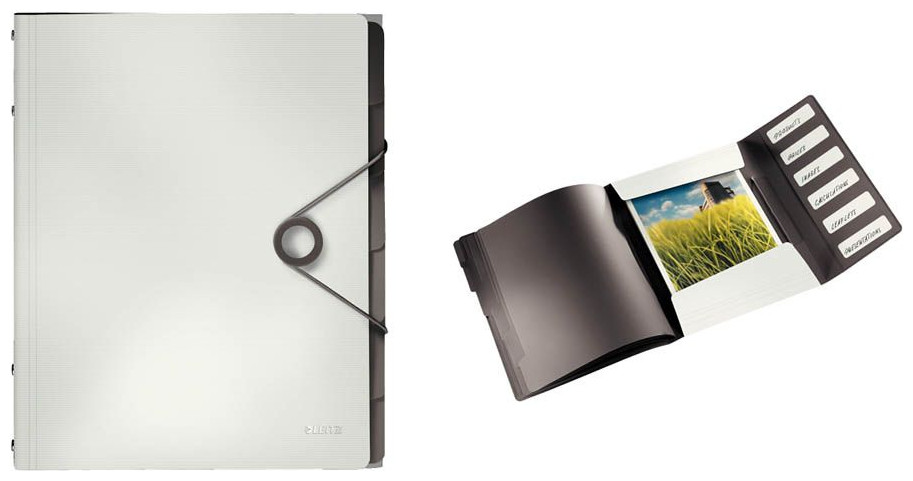 έχει 6 διαχωριστικά με ευρετήρια για εύκολη ταξινόμηση, 3 επιπλέον πτερύγια στο πίσω κάλυμμα για αποθήκευση χαλαρών εγγράφων,