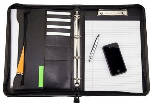 - εξοπλισμένο με μηχανισμό δαχτυλιδιών με 4 κρίκους που σας επιτρέπουν να στερεώνετε μπλουζάκια - κλιπ για έγγραφα ή σημειωματάριο Α4 - θήκες για κάρτες ή επαγγελματικές κάρτες - τσέπη που δένει με φερμουάρ - εσωτερική τσέπη που μπορεί να επεκταθεί - ιδανική για έγγραφα ή ένα tablet - ένα κλείσιμο με φερμουάρ εμποδίζει το περιεχόμενο να πέσει έξω
