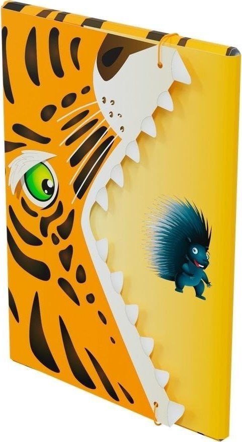 Η τίγρη είναι πολύ δυνατό ζώο, είναι αρπακτικό. Φαίνεται ότι αυτός ο μικροσκοπικός χοιρινός δεν έχει καμία πιθανότητα. Είναι όμως πραγματικά; Το ότι κάποιος είναι υπέροχος δεν σημαίνει ότι μπορεί να κάνει οτιδήποτε, ότι δεν φοβάται τίποτα ή ότι μπορεί να ανταπεξέλθει σε οποιαδήποτε εργασία. Τι κι αν κοιτούσαμε τον χαρτοφύλακα λίγο πιο μεταφορικά. Είμαι ο μικρός χοιρινός, η τίγρη είναι μια πρόκληση, κάτι που πρέπει να κάνω, αλλά με τρομάζει τρομερά. Δεν ξέρω πραγματικά πώς να προσεγγίσω αυτό το θέμα. Γιατί τι μπορώ να κάνω; Είμαι απλά ένας μικρός ανήμπορος χοιρινός! Τώρα ας το δούμε διαφορετικά. Η τίγρη, αυτό το μεγάλο κακό ζώο, έχει ορθάνοιχτο στόμα με αυτά τα τεράστια μεγάλα δόντια, και ο σκαντζόχοιρος χαμογελά σαν να κέρδισε μόλις το λαχείο! Καθαρή αφαίρεση; Ή μήπως υπάρχει κάτι σε αυτό; Υπάρχουν στιγμές στη ζωή που πιστεύουμε ότι δεν μπορούμε να αντεπεξέλθουμε άλλο, ότι δεν μπορούμε να πετύχουμε τίποτα, ότι δεν είμαστε κατάλληλοι για τίποτα. Ο καθένας μπορεί να έχει μια στιγμή αδυναμίας. Είναι απολύτως φυσικό. Όμως η ζωή δεν είναι παραμύθι, είναι συνεχείς προκλήσεις. Το πώς τα βιώνουμε εξαρτάται από εμάς, από τη στάση μας. Ίσως αντί να πείτε: δεν θα πετύχει, καλύτερα να σκεφτείτε: μπορώ να τα καταφέρω, ή τουλάχιστον θα προσπαθήσω! Φυσικά, δεν είναι εύκολη υπόθεση, αλλά αν κάτι είναι δύσκολο να επιτευχθεί, τότε όταν τελικά το αντιμετωπίσουμε, η ικανοποίησή μας είναι πολύ μεγαλύτερη! Αντί να τα παρατήσετε αμέσως, αξίζει τουλάχιστον να προσπαθήσετε να αντιμετωπίσετε μια δεδομένη εργασία ή πρόβλημα. Αφήστε αυτόν τον χαμογελαστό χοιροσκόπο να είναι το κίνητρό σας για να αναλάβετε δράση! Αφήστε αυτόν τον φάκελο να σας βοηθήσει να οργανώσετε τα σημαντικά έγγραφά σας. Αφήστε αυτή την τίγρη να τρέξει μακριά και πάρτε τις ανησυχίες σας μαζί σας. Ένας φάκελος, απλώς ένας φάκελος, αλλά μπορεί να σας κάνει να σκεφτείτε και ίσως να σας ενθαρρύνει να αναλάβετε δράση! Καλή τύχη!