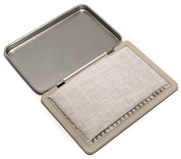 - μη κορεσμένο με μελάνι - μεταλλικό περίβλημα - μέγεθος 110 x 70 mm (εσωτερικό), 123 x 85 mm (εξωτερικό){Type} Επιθέματα σφραγίδας. {Χρώμα} Άχρωμο