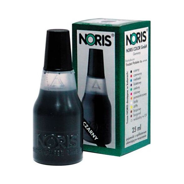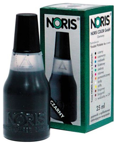 uniwersalny tusz wodny do stempli ręcznych i samotuszujących z gumową i polimerową płytką stemplującą - buteleczka 25ml z końcówką ułatwiającą nasączanie poduszek oraz nakrętką w kolorze tuszu