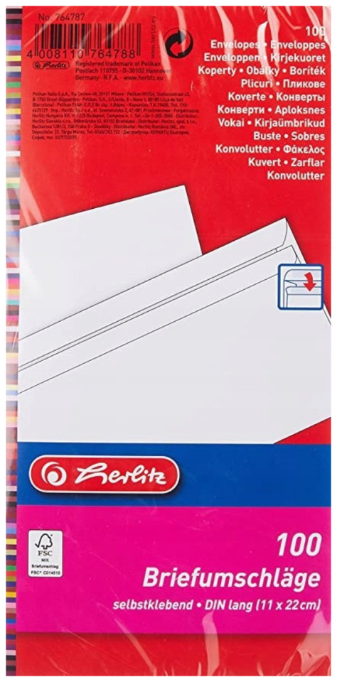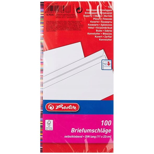 Φάκελος Herlitz Herlitz DL αυτοκόλλητος χωρίς παράθυρο 100 τεμάχια