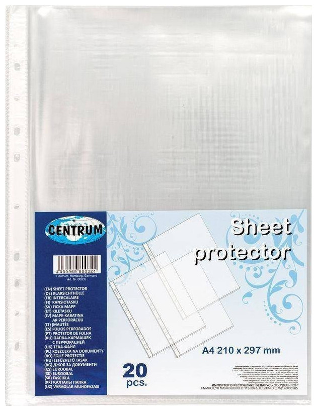 Θήκη εγγράφων Α4, 20 τμχ. Τα μανίκια εγγράφων Α4 είναι κατασκευασμένα από οικολογικό, ανθεκτικό, λείο φύλλο πολυπροπυλενίου, πάχους 25 μικρομέτρων. Αντιστατικά περιτυλίγματα που είναι ιδανικά για καθημερινή χρήση. Τα μανίκια ανοίγουν εύκολα από το επάνω μέρος, ώστε τα έγγραφα να αφαιρούνται εύκολα χωρίς να τα αφαιρέσετε. Υπάρχουν τρύπες στο λουρί που σας επιτρέπουν να τοποθετήσετε το μπλουζάκι σε οποιοδήποτε συνδετικό υλικό Χάρη στη χρήση ενός ειδικού φύλλου PP με αυξημένη αντοχή, το οποίο είναι πιο λεπτό από το τυπικό, αυτό το προϊόν είναι οικονομικό και φιλικό προς το περιβάλλον. Χαρακτηριστικά προϊόντος: υλικό: φύλλο πολυπροπυλενίου Μορφή: Α4 + πάχος φύλλου: 25 microns χρώμα: διάφανος τύπος: συσκευασία κρυστάλλου: 20 τμχ