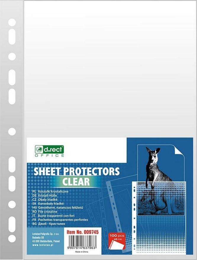 - krystaliczna folia 45 mic- otwierane od góry- na dokumenty w formacie A4- antystatyczne- wzmocniony pasek z uniwersalną perforacją- wykonane z polipropylenu- opakowanie foliowe