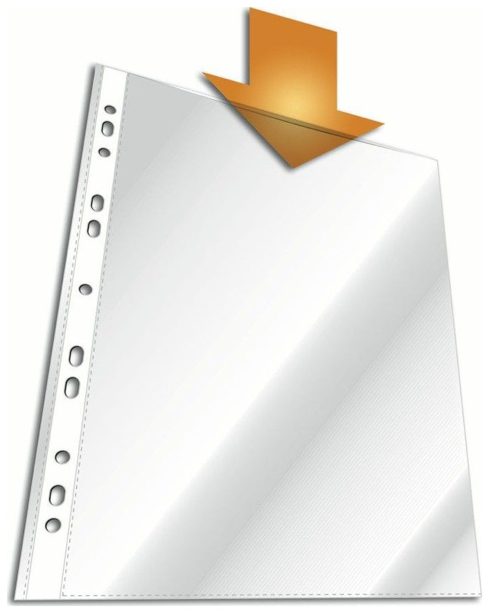 Μανίκι για αποθήκευση εγγράφων χωρίς διάτρηση, επίσης με μηχανισμό κρίκου από πολυπροπυλένιο με πάχος υψηλής ποιότητας 60. Μανίκι με οπές στο επάνω μέρος, με ενισχυμένη λωρίδα: A4100 τμχ Ελάχιστη ποσότητα παραγγελίας: 10 τεμ.{Type} Κανονικό . {Μορφή} A4 . {Ποσότητα} 100 τεμ.