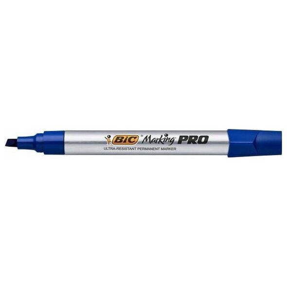 Μόνιμος μαρκαδόρος PRO μπλε, λοξότμητη μύτη 964803 BIC Εξαιρετικά ανθεκτικός μόνιμος μαρκαδόρος που αντέχει ακόμα και στις πιο ακραίες συνθήκες. Ένα προϊόν που δεν ξεθωριάζει και στεγνώνει γρήγορα ιδανικό για γυαλί, ξύλο, μέταλλο, χαρτόνι και πλαστικό. Χάρη στο δυνατό άκρο του, λειτουργεί εξαιρετικά σε απαιτητικές επιφάνειες και το μεταλλικό περίβλημα από αλουμίνιο εξασφαλίζει πολύ υψηλή αντοχή σε εξωτερικούς παράγοντες. Διαυγής γραμμή γραφής με μεγάλη διάρκεια Πολύ ανθεκτική ακόμα και σε ακραίες συνθήκες: -30C / +150C Ισχυρή, ανθεκτική μύτη για απαιτητικές επιφάνειες Μεταλλικό περίβλημα από αλουμίνιο Δυνατότητα γραφής στις περισσότερες επιφάνειες, όπως γυαλί, μέταλλο, ξύλο, χαρτόνι Αδιάβροχο - ιδανικό για πλύση Αντιολισθητική επικάλυψη που δεν ξεθωριάζει Γρήγορο στέγνωμα Χρώμα: μπλε EAN: 3086123516373