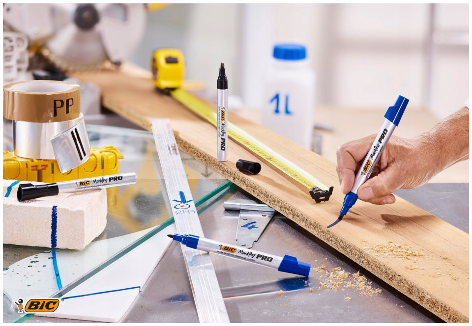 Μαρκαδόρος Bic Marking PRO, στρογγυλός μπλε Ένας εξαιρετικά ανθεκτικός μαρκαδόρος που θα καλύψει και τις πιο απαιτητικές συνθήκες. Ένα προϊόν που δεν ξεθωριάζει και στεγνώνει γρήγορα ιδανικό για γυαλί, ξύλο, μέταλλο, χαρτόνι και πλαστικό. Χάρη στο ισχυρό άκρο, λειτουργεί εξαιρετικά σε πιο δύσκολες επιφάνειες και το μεταλλικό περίβλημα από αλουμίνιο εξασφαλίζει εξαιρετική αντοχή σε εξωτερικούς παράγοντες Χαρακτηριστικά: Διαυγής, ανθεκτική γραμμή γραφής Εξαιρετικά ανθεκτική ακόμη και σε ακραίες συνθήκες: -30⁰C / +150⁰C Ισχυρό, ανθεκτικό. άκρη για απαιτητικές επιφάνειες Μεταλλικό περίβλημα από αλουμίνιο Αδιάβροχο - ιδανικό για πλύσιμο Δυνατότητα γραφής στις περισσότερες επιφάνειες, όπως γυαλί, μέταλλο, ξύλο, χαρτόνι. Αντιολισθητική επικάλυψη Μη ξεθώριασμα Γρήγορο στέγνωμα Χρώμα: μπλε