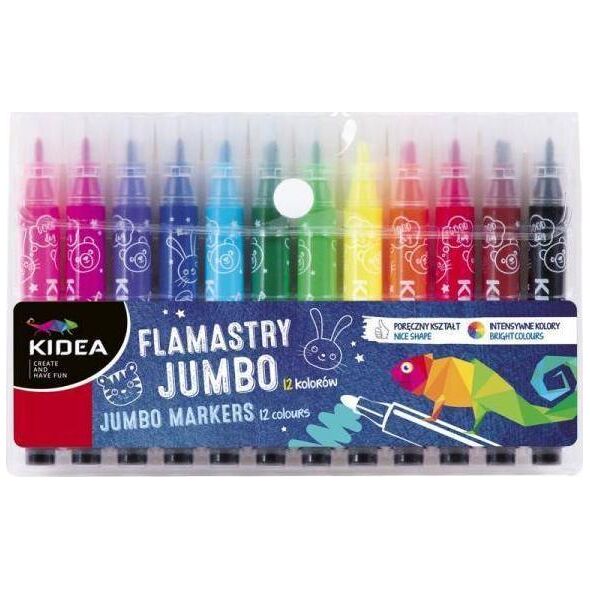 Zestaw 12 flamastrów w rozmiarze jumbo w intensywnych kolorach.