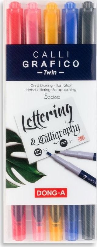 Ένα σετ 5 μαρκαδόρων σε ζωηρά χρώματα που διαρκούν. Το μελάνι με βάση το νερό σάς επιτρέπει να αφαιρείτε εύκολα τη βρωμιά. Στυλό διπλής όψης: παραδοσιακή μύτη 2mm και λοξότμητη μύτη 5mm.{Tip Type} Λοξοτομή . {Color} Σετ χρωμάτων . Δείκτες {Type}