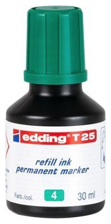 Edding T 25. Χρώματα στυλό: Πράσινο, Χωρητικότητα: 30 ml, Συμβατότητα: edding No.1, 21, 22, 25, 400, 500, 550, 800, 850, 3000, 3300. Ποσότητα ανά συσκευασία: 1 τεμ.{Χρώμα} Πράσινο. {Tip type} Δεν υπάρχουν διαθέσιμα δεδομένα. {Type} Ανταλλακτικά δείκτη