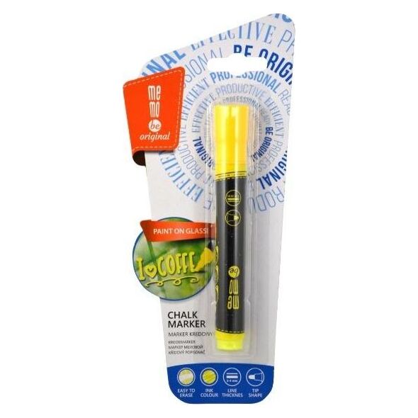 Οι μαρκαδόροι με κιμωλία είναι ιδανικοί για την κατασκευή επιγραφών, σημάνσεων και διακοσμήσεων σε γυάλινες και κιμωλιακές επιφάνειες. Καλά καλυμμένο μελάνι με βάση το νερό σε έντονα χρώματα, που αφαιρείται εύκολα από τις περισσότερες λείες επιφάνειες με ένα υγρό πανί. Το σύστημα άντλησης μελανιού στο άκρο εξασφαλίζει ομαλή και ομοιόμορφη γραφή. Στρογγυλή άκρη με πάχος γραμμής γραφής 2-3mm. Κάθε φορά πριν χρησιμοποιήσετε το μαρκαδόρο, ανακινείστε τον καλά χωρίς να αφαιρέσετε το καπάκι, στη συνέχεια ανοίξτε τον μαρκαδόρο, πιέστε το άκρο γραφής στην επιφάνεια του χαρτιού αρκετές φορές ενώ κρατάτε τον μαρκαδόρο σε κάθετη θέση, ώστε το μελάνι να ρέει προς την άκρη - το ο δείκτης είναι έτοιμος για χρήση.{Τύπος συμβουλής} Στρογγυλή. {Χρώμα} Κίτρινο . {Type} Μαρκαδόρος κιμωλίας