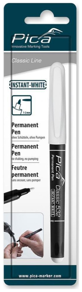 Μαρκαδόρος Pica-Marker Pica Permanent INSTANT λευκός, Στρογγυλή Μύτη, 1-2mm Λιανική