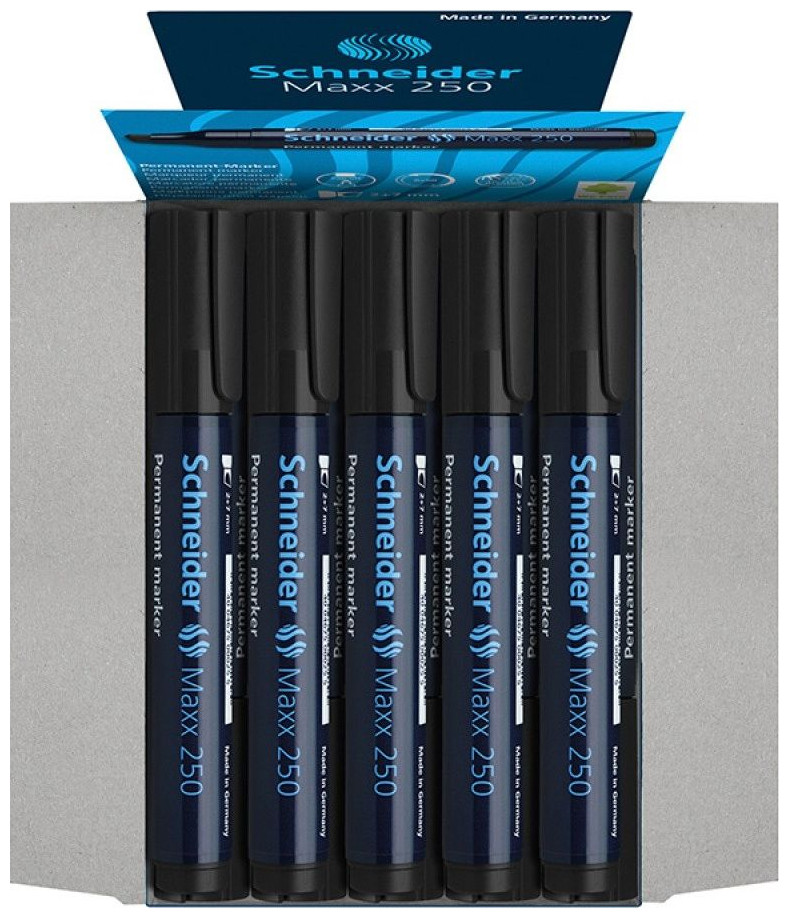 Marker permanentny od Schneider! Ze ścietą końcówką o średnicy 2-7 mm. Można pisać na kartonie, papierze, tworzywie, szkle, metalu, drewnie i na większości innych materiałów.