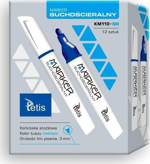Marker suchościeralny z końcówką stożkową. Grubość linii pisania 3 mm. Szybkoschnący, nietoksyczny tusz na bazie alkoholu. Nie rysuje powierzchni. Łatwy do starcia z większości powierzchni. Pasuje do ścieraka magnetycznego KS110-M3. Opakowanie: pudełko 12 sztuk.