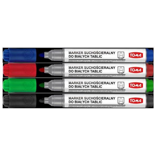 Μαρκαδόροι για γραφή σε σανίδες στεγνού σβήσιμου, μελάνι σε σκόνη αλκοολούχου εύκολης διαγραφής, ουδέτερο άρωμα. Στρογγυλή μύτη 2 mm 4 χρώματα στη συσκευασία: μαύρο, μπλε, κόκκινο, πράσινο, 9x18x1,5 cm{Τύπος συμβουλής} Στρογγυλή. {Type} Μαρκαδόρος κιμωλίας. {Color} Ένα σύνολο χρωμάτων