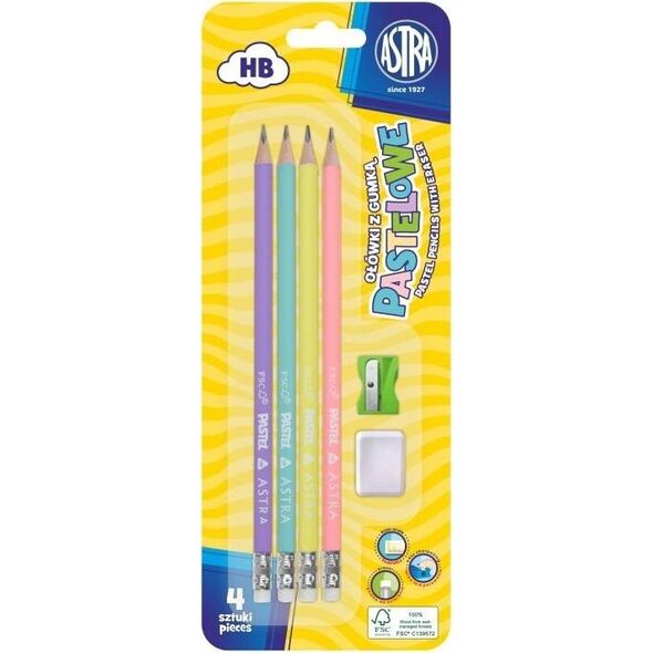Astra Μολύβι παστέλ HB με χάρακα 4τμχ +γόμα+ ξύστρα ASTRA