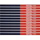 Μολύβι τεχνικό και ξυλουργικό, δίχρωμο κόκκινο και μπλε. μήκος περίπου 180 mm, ένθετο πάχους 4 mm, λακαρισμένο οβάλ ξύλινο σώμα. Για σήμανση ή γραφή σε διάφορα υλικά, π.χ. ξύλο, τούβλα, οικοδομικές σανίδες κλπ. Μολύβια κόκκινο-μπλε 12 τεμ.