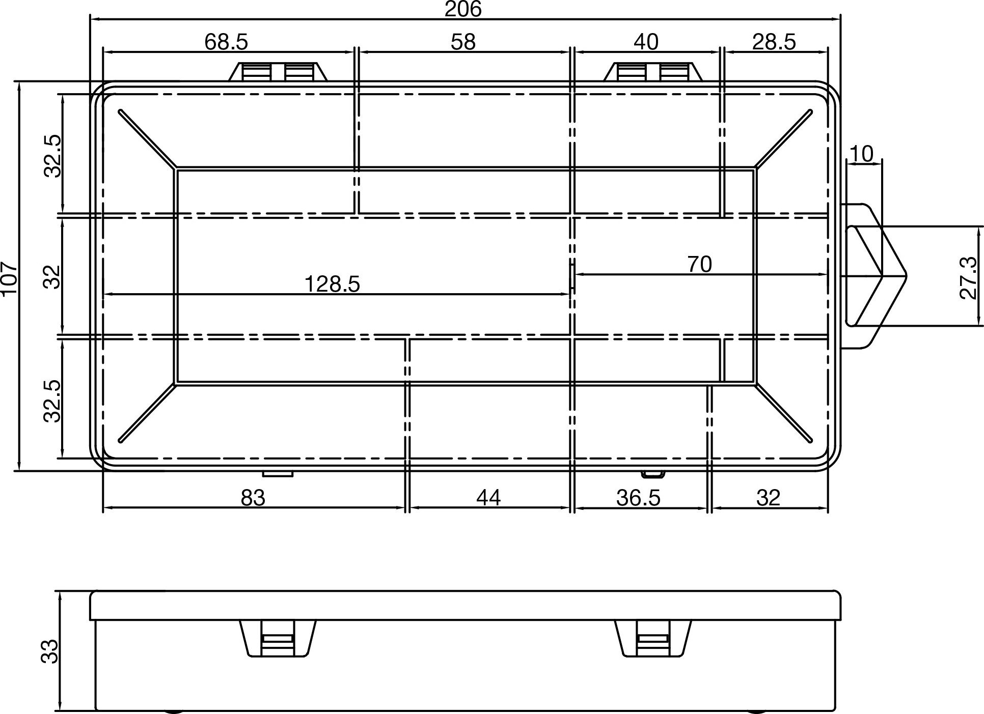 Κουτί μικρών εξαρτημάτων InLine®, 10 διαμερίσματα, Διαστάσεις: 206x107x33mm, διαφανές