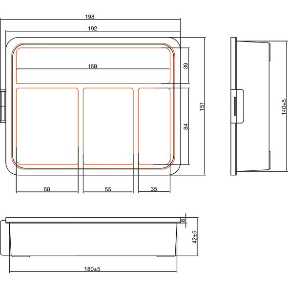 Κουτί μικρών εξαρτημάτων InLine®, 4 διαμερίσματα, διαστάσεις: 180x140x40mm, πορτοκαλί