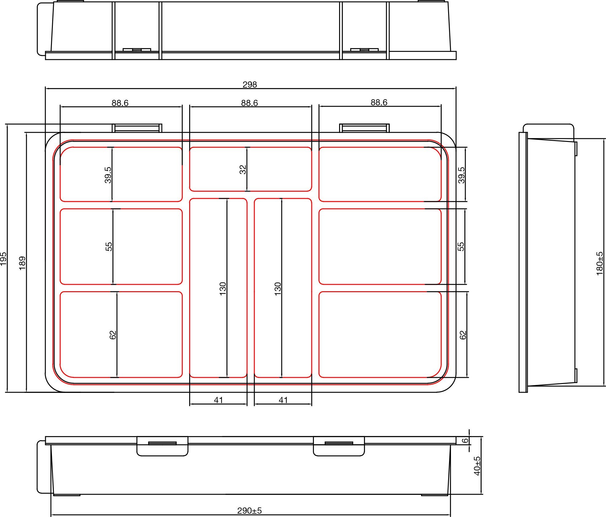Κουτί μικρών εξαρτημάτων InLine®, 9 διαμερίσματα, Διαστάσεις: 290x185x45mm, πορτοκαλί
