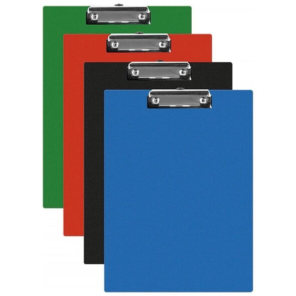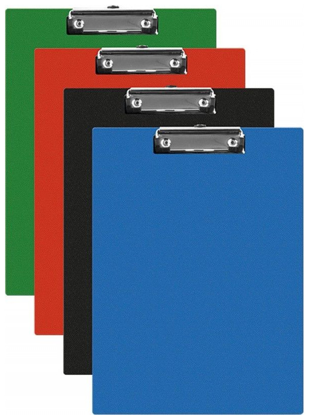Clipboard Q-CONNECT deska, PVC, A5, mix kolorów Podkładka do pisania bez okładki, wykonana z tektury o grubości ok. 2mm pokryta wysokiej jakości PVC zacisk sprężynowy posiada metalowy zacisk spinający do 50 arkuszy o gramaturze 70gsm na dłuższym boku znajduje się kieszonka na długopis lub ołówek możliwość zawieszenia podkładki za pomocą specjalnego oczka umieszczonego w zacisku format: A5 rozmiar: 170x240mm mix kolorów