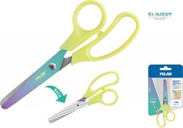Σχολικό ψαλίδι BASIC SUNSET με χρωματιστή λάμα και κίτρινη πλαστική λαβή. Μήκος 13,3 cm. Λεπίδα από ανοξείδωτο χάλυβα με στρογγυλεμένη μύτη. Ιδανικό για σχολική χρήση. Ένα πρωτότυπο προϊόν που δημιουργήθηκε από το τμήμα έρευνας και ανάπτυξης του MILAN. Μέγεθος ψαλιδιού: 13,3 x 5,3 x 1,1 cm.{Type}Γραφείο