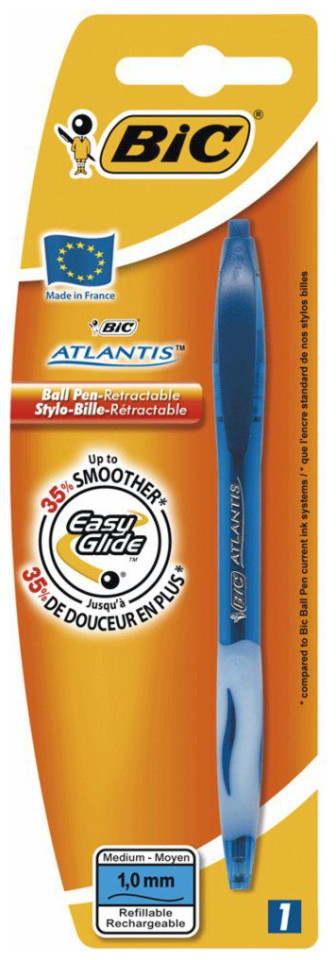 Αυτόματο στυλό με δυνατότητα αντικατάστασης. Εύκολη αναγνώριση του χρώματος μελανιού. Διάφανο σώμα. Λαστιχένια λαβή. Μπάλα γραφής από καρβίδιο βολφραμίου. Μεσαίο άκρο 1 mm. Πλάτος γραμμής γραφής 0,4 mm. Μήκος γραμμής γραφής 2400 m Μελάνι με βάση το λάδι, ανθεκτικό, αδιάβροχο και στεγνώνει γρήγορα (< 2 s). Η φόρμουλα μελάνης easy glide εγγυάται έως και 35% ομαλότερη και ελαφρύτερη γραφή. {Εισαγωγή χρώματος} Μπλε . {Replaceable cartridge} Ναι. {Type} Αυτόματο
