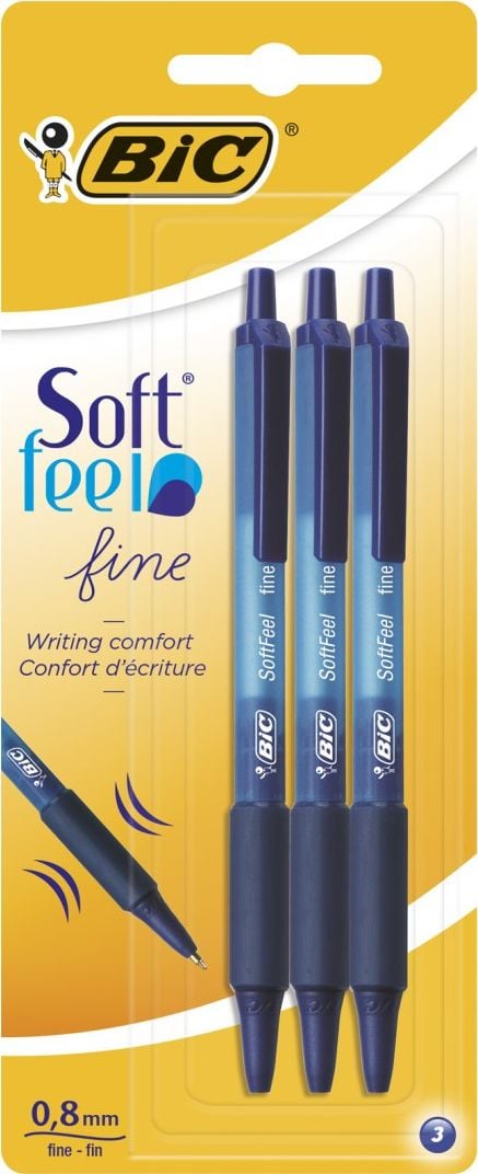 Αυτόματο στυλό BIC Soft Feel Clic Grip, μπλε κυψέλη, 3 τεμάχια - Διαθέτει αποτελεσματικό σύστημα εκτόξευσης επαναπλήρωσης και στρογγυλό, ελαφρύ αλλά συμπαγές περίβλημα - Η ζώνη λαβής από καουτσούκ εξασφαλίζει άνεση και έλεγχο κατά τη γραφή - Το κλιπ σας επιτρέπει να το στερεώσετε σε σημειωματάριο ενώ εργάζεστε στο σπίτι, στο σχολείο ή στο γραφείο{Εισαγωγή χρώματος} Μπλε . {Type} Αυτόματο