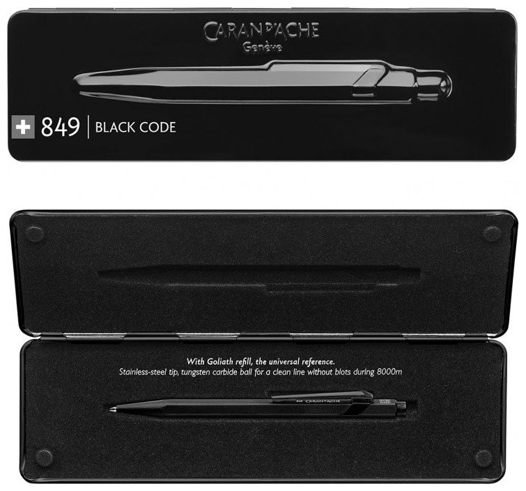 Μετά την επιτυχία των συλλογών 849 Original, Goldbar και Brut Rosé, το νέο στυλό 849 Black Code ολοκληρώνει την προσφορά Caran d'Ache Gift Line, ο κατασκευαστής με έδρα τη Γενεύη σας προσκαλεί να ανακαλύψετε ξανά το εμβληματικό στυλό του με μια ολομαύρη εμφάνιση, δίνοντας ένα αποφασιστικά αστικού στυλ νέο μαύρο ματ φινίρισμα 849 Black Code αποπνέει μοντέρνο και κομψότητα, η εντελώς μαύρη εμφάνιση θα αρέσει στους λάτρεις του σχεδιασμού που αναζητούν μινιμαλισμό, το στυλό είναι κατασκευασμένο από αλουμίνιο με εξαγωνικό σχήμα. διατομή, τέλεια προσαρμοσμένη στο χέρι, έχει μηχανισμό επαναπλήρωσης με κουμπί και πολύ συμπαγές κλιπ εξοπλισμένο με πολύ ευρύχωρο ανταλλακτικό στυλό Goliath, το οποίο θα μας επιτρέψει να γράψουμε 600 σελίδες Α4, το στυλό τοποθετείται σε ειδικό εταιρικό κουτί με μαγνητικό κλείσιμο, κατασκευής Ελβετίας, χρώμα: μαύρο EAN: 7630002342612{Type} Αυτόματο . {Type} Αυτόματο . {Type} Αυτόματο . {Type} Αυτόματο . {Type} Αυτόματο . {Insert color} Δεν υπάρχουν διαθέσιμα δεδομένα. {Insert color} Δεν υπάρχουν διαθέσιμα δεδομένα. {Insert color} Δεν υπάρχουν διαθέσιμα δεδομένα. {Insert color} Δεν υπάρχουν διαθέσιμα δεδομένα. {Cartridge color} Δεν υπάρχουν διαθέσιμα δεδομένα
