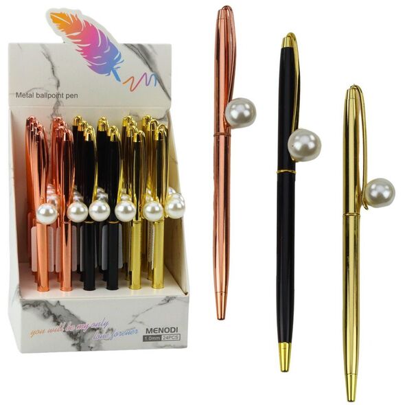 Αυτόματο Μεταλλικό Στυλό Μαργαριτάρι Μπλε Μελάνι 1.0mm