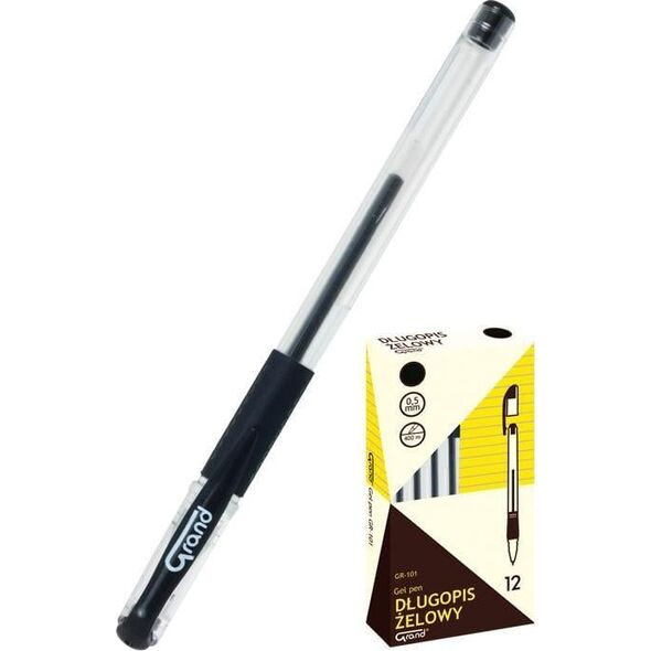 GR-101 μαύρο τζελ στυλό, συσκευασία 2 GRAND. Στυλό με αντικαταστάσιμο ανταλλακτικό, εργονομικό περίβλημα με αντιολισθητική λαβή, διαφανές περίβλημα σάς επιτρέπει να ελέγχετε τον βαθμό κατανάλωσης αναπλήρωσης, καπάκι στο χρώμα του ανταλλακτικού. Πάχος γραμμής 0,5 mm.{Insert color} Μαύρο . {Type} Αυτόματο