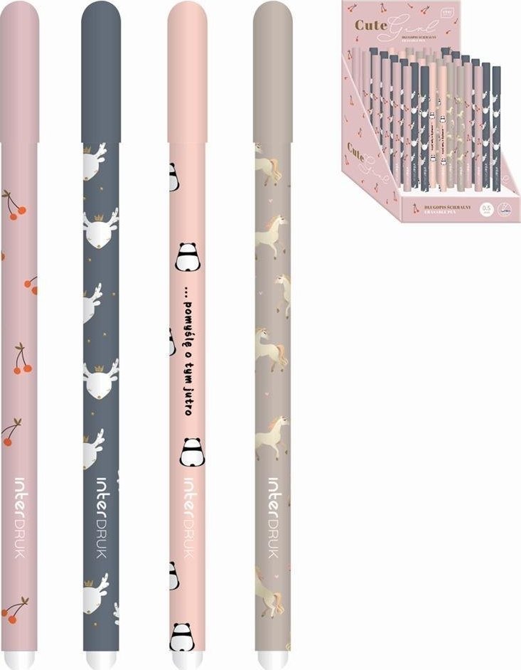 Πάχος γραφής: 0,5 mm. Κλείδωμα με καπάκι. Μπλε φυσίγγιο. Τελείωσε με μια γόμα που επιτρέπει τη γρήγορη και αισθητική διόρθωση του γραπτού κειμένου, χωρίς τη χρήση διορθωτή ή διαγραφή. Σπίτι σε 4 γλυκά, girly σχέδια. 36 κομμάτια στην οθόνη. Τα ίδια μοτίβα θα βρείτε και στα μολύβια, τις γόμες και τα αξεσουάρ χαρτικής μας - δημιουργήστε το δικό σας μοναδικό σετ!{Εισαγωγή χρώματος} Μπλε . {Type}Διαγραφή