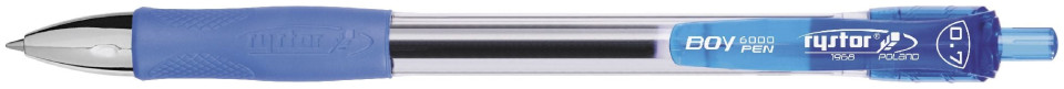 BOY PEN 6000 BALLPOINT - αυτόματο στυλό με αντικαταστάσιμα ανταλλακτικά F-6001 - μύτη που εξασφαλίζει ελαφρότητα και ομαλή γραφή - διάφανο περίβλημα - Λαστιχένια λαβή και κλιπ στο χρώμα του μελανιού - Πάχος γραμμής γραφής 0,27mm - Μήκος γραμμής γραφής 6000m - μπλε χρώμα{Εισαγωγή χρώματος} Μπλε . {Replaceable cartridge} Ναι. {Type} Αυτόματο