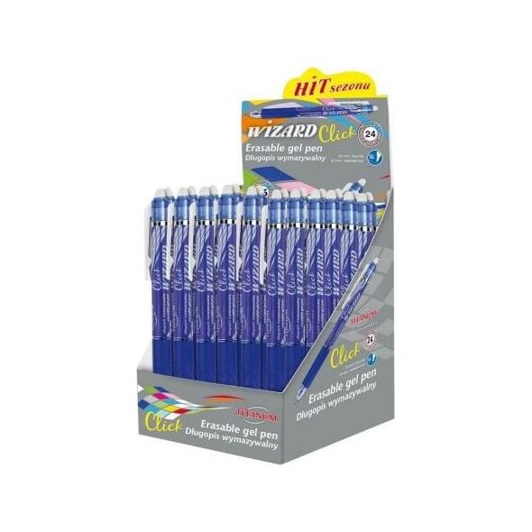 Μαζική συσκευασία 24 τεμαχίων - αυτόματο στυλό - σβήσιμο - ειδική μύτη για το σκούπισμα του μελανιού - Λαστιχένια λαβή για εύκολο κράτημα - πλαστικό, διάφανο περίβλημα - Πάχος γραμμής γραφής: 0,7 mm - χρώμα μελανιού: μπλε - κωδικός αναπλήρωσης: 261698 - οθόνη 24. τεμ.{Εισαγωγή χρώματος} Μπλε . {Αριθμός τεμαχίων στη συσκευασία} 24 . {Type}Διαγραφή