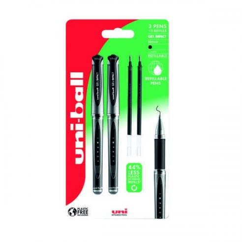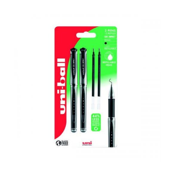 Uni-ball Gel Impact 153 2τμχ Μαύρα Στυλό Gel Roller +2τμχ ανταλλακτικά, πλάτος γραμμής 1,0mm