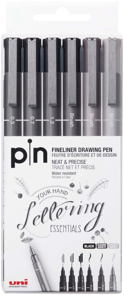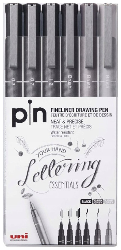 UNIBALL Uni - Fineliner, Hard Lettering Set (6 pcs) (401236) /Arts and Crafts