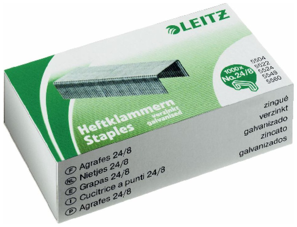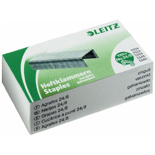 Γαλβανισμένοι συνδετήρες LEITZ, 24/8 Αριθμός συρραπμένων φύλλων: 40 Υψηλής ποιότητας ατσάλινοι συνδετήρες - γαλβανισμένοι.{Ποσότητα ανά συσκευασία} 1000 . Συρραπτικά {Type} . {Μέγεθος} 24/8
