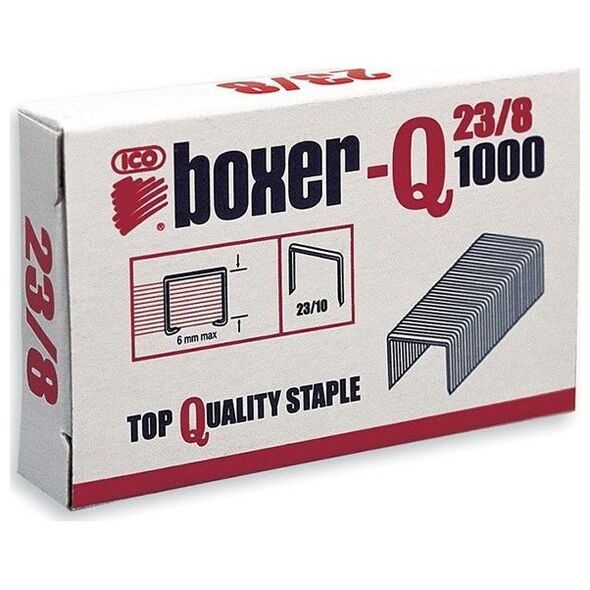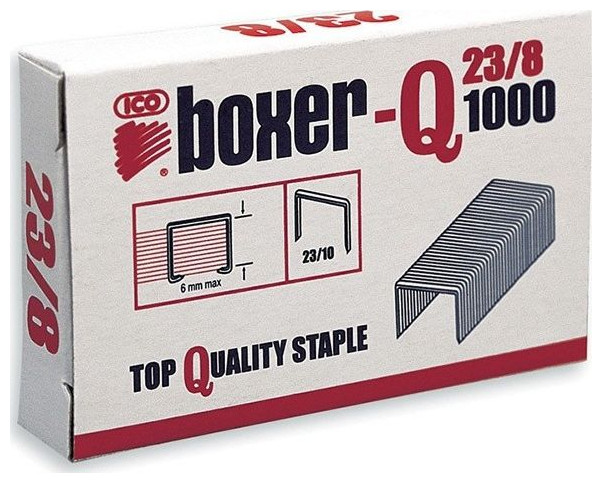 Συνδετήρες ICO Boxer, 23/8, γαλβανισμένοι, 1000 τεμ. κατασκευασμένο από υψηλής ποιότητας υλικό σκληρό και ανθεκτικό ικανότητα συρραφής: έως 40 φύλλα μέγεθος: 23/8 1000 τεμάχια στα αγγλικά ασημί χρώμα{Ποσότητα ανά συσκευασία} 1000 . Συρραπτικά {Type} . {Μέγεθος} 23/8