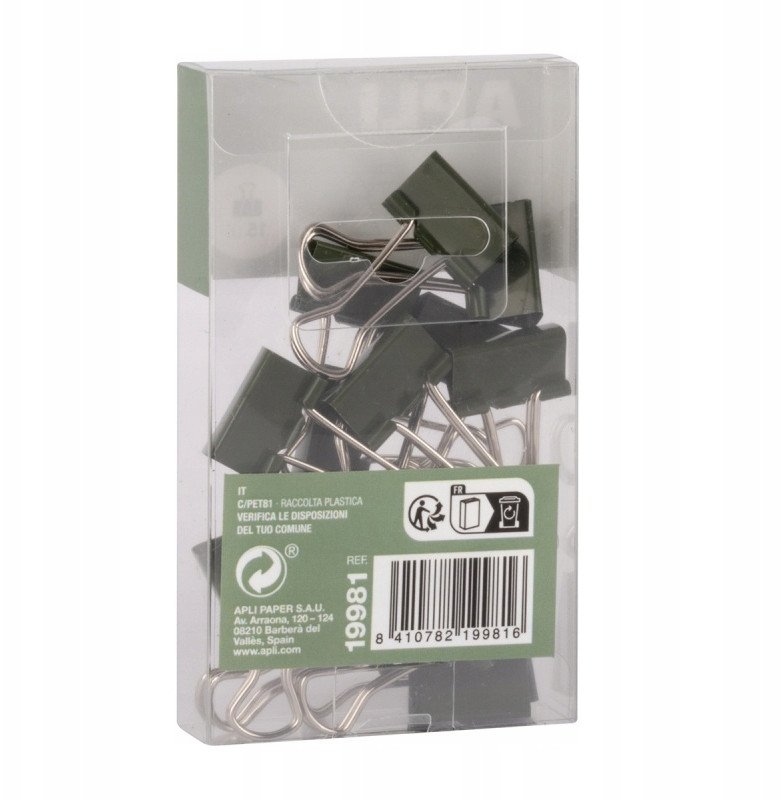 Κλιπς εγγράφων Apli Up North, 19mm, 15τμχ, κουτί με κρεμαστή, χακί
