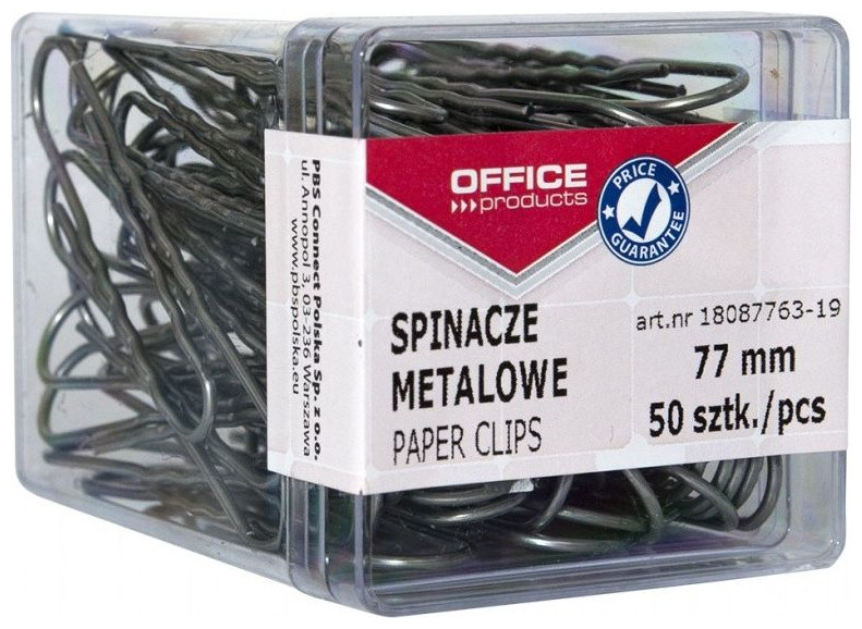 OFFICE PRODUCTS μεταλλικά κλιπ, 77mm, σε κουτί, 50 τεμ., ασημί μεταλλικά κλιπ μέγεθος: 77mm κουτί με κρεμαστό χρώμα: ασημί 50 τμχ σε συσκευασία 1 τεμ. στα αγγλικά{Type} συνδετήρες . {Ποσότητα ανά συσκευασία} 50 . {Μέγεθος} 77 mm