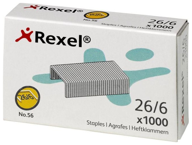 Κατασκευασμένα σύμφωνα με τα υψηλότερα πρότυπα ποιότητας, οι συνδετήρες Rexel No. 56 εγγυώνται ακριβή και απρόσκοπτη συρραφή των εγγράφων. Συνιστάται για χρήση σε πολλά μοντέλα συρραπτικών Rexel όπως Easy Touch, Gazelle, Matador, Centor, Torador, Beasti, Buddy και πολλά άλλα.{Ποσότητα ανά συσκευασία} 1000 . Συρραπτικά {Type}