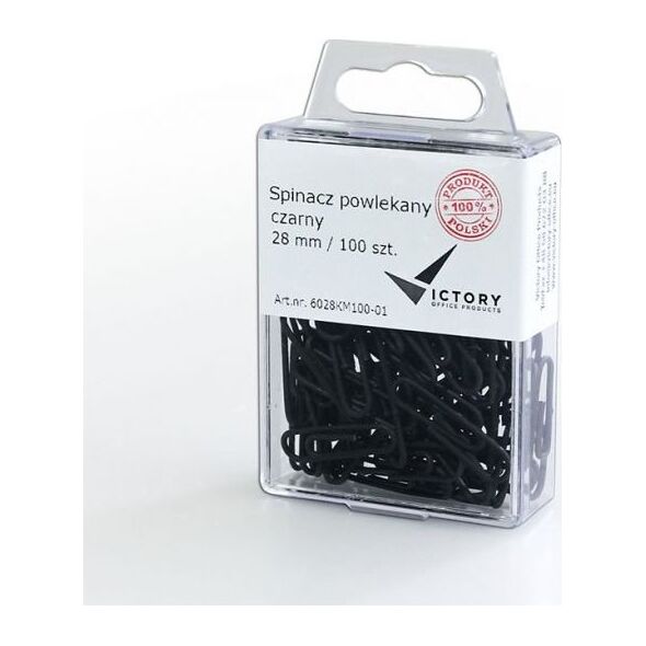 Συνδετήρες Victory Office Product 28MM 100 τεμ. στρογγυλοί επικαλυμμένοι μαύροι πλαστικό δοχείο κρεμαστό
