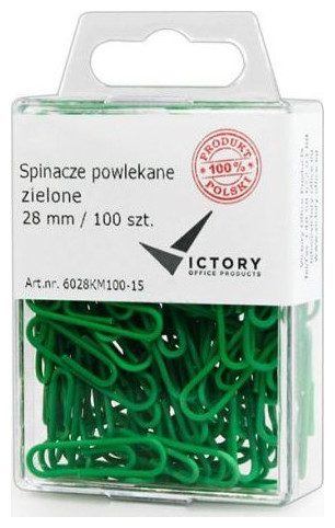 Συνδετήρες γραφείου Victory Office Product 28MM 100 τεμ. στρογγυλοί επικαλυμμένοι πράσινοι πλαστικό δοχείο κρεμαστό