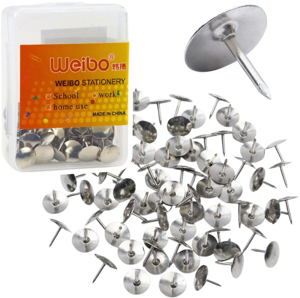 Σετ Κουμπιά με Επίπεδη Κεφαλή Γραφείου Σχολικά Ασημένια 40τμχ. LEAN