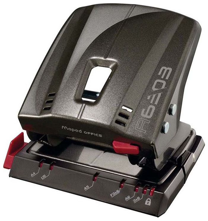 Οι εσοχές στο πίσω μέρος της βάσης σύμφωνα με την απόσταση των δακτυλίων σε ένα συνδετικό υλικό επιτρέπουν τη γρήγορη διάτρηση χωρίς τη χρήση λωρίδας μορφοποίησης.