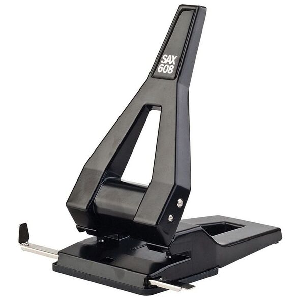Διάτρηση οπών με μεταλλικό μηχανισμό και μεταλλικό περίβλημα, περιοριστής μορφής (A4/F/Q1/Q2/A5/A6/888), 2 οπές (διάμετρος 5,5 mm) σε απόσταση 80 mm, εύκολη διάτρηση χάρη στη χαμηλή πίεση - 25% μικρότερη από μια κανονική γροθιά, 10 χρόνια εγγύηση, τρυπάει έως 63 φύλλα χαρτιού, μαύρο χρώμα.{Χρώμα} Μαύρο. {Κατασκευή} Μεταλλ. {Αριθμός φύλλων διάτρητων κάθε φορά} 63 . {Τύπος} 2 οπών . {Σειρά} 608