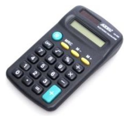 Αριθμομηχανή 8 ψηφίων με μεγάλα κλειδιά, πλαστικά κλειδιά. Βασικές λειτουργίες. Αριθμομηχανή χειρός, διαστάσεις αριθμομηχανής: 11x6 cm.{Κατασκευή} Πλαστικό. {TAX function} Αρ. {Στρογγυλοποίηση} Αρ. {πλήκτρο μηδέν} Καμία λειτουργία. {Ενσωματωμένος εκτυπωτής} Αρ. {Τύπος τροφοδοσίας} Μπαταρία-ηλιακός. {Τύπος εμφάνισης} 8ψήφιος. {Αυτόματη επανάληψη} Όχι. {Ιστορικό} Καμία λειτουργία . {Άλλα} Στοιχεία υπολογισμού. {Χρώμα} Μαύρο. {Other} Αλλάξτε το σύμβολο +/-. {Amount of Memory} Εκτός μνήμης. Γραφείο {Purpose} . Αρχική σελίδα {Destiny}. {Βάρος [g]} 64
