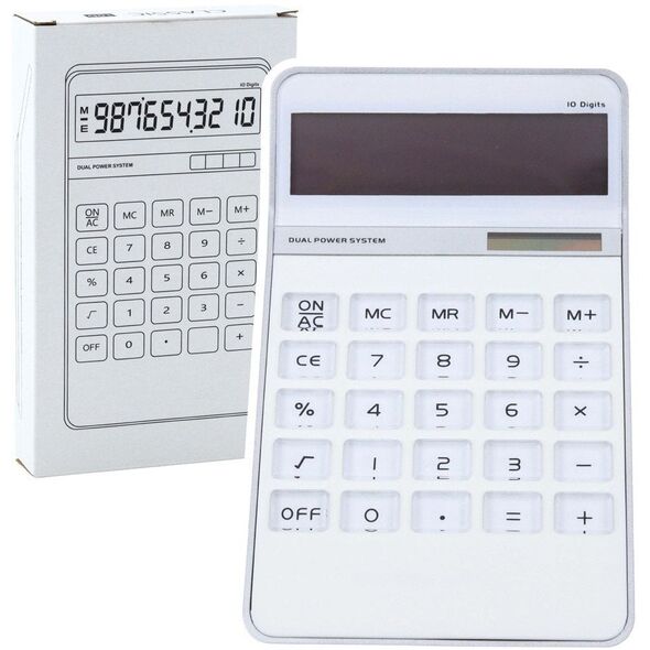 Μεγάλη Επιτραπέζια Αριθμομηχανή με Οθόνη 10 Ψηφίων Κομψή Λευκή LEAN